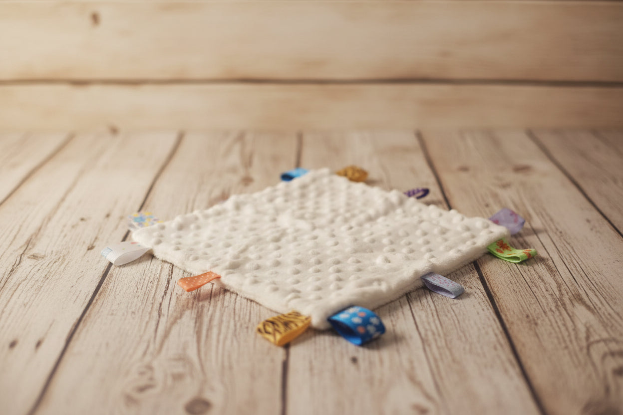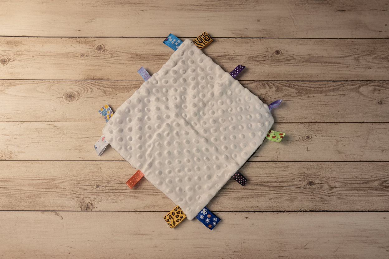 - Soft plush fabric with taggy details