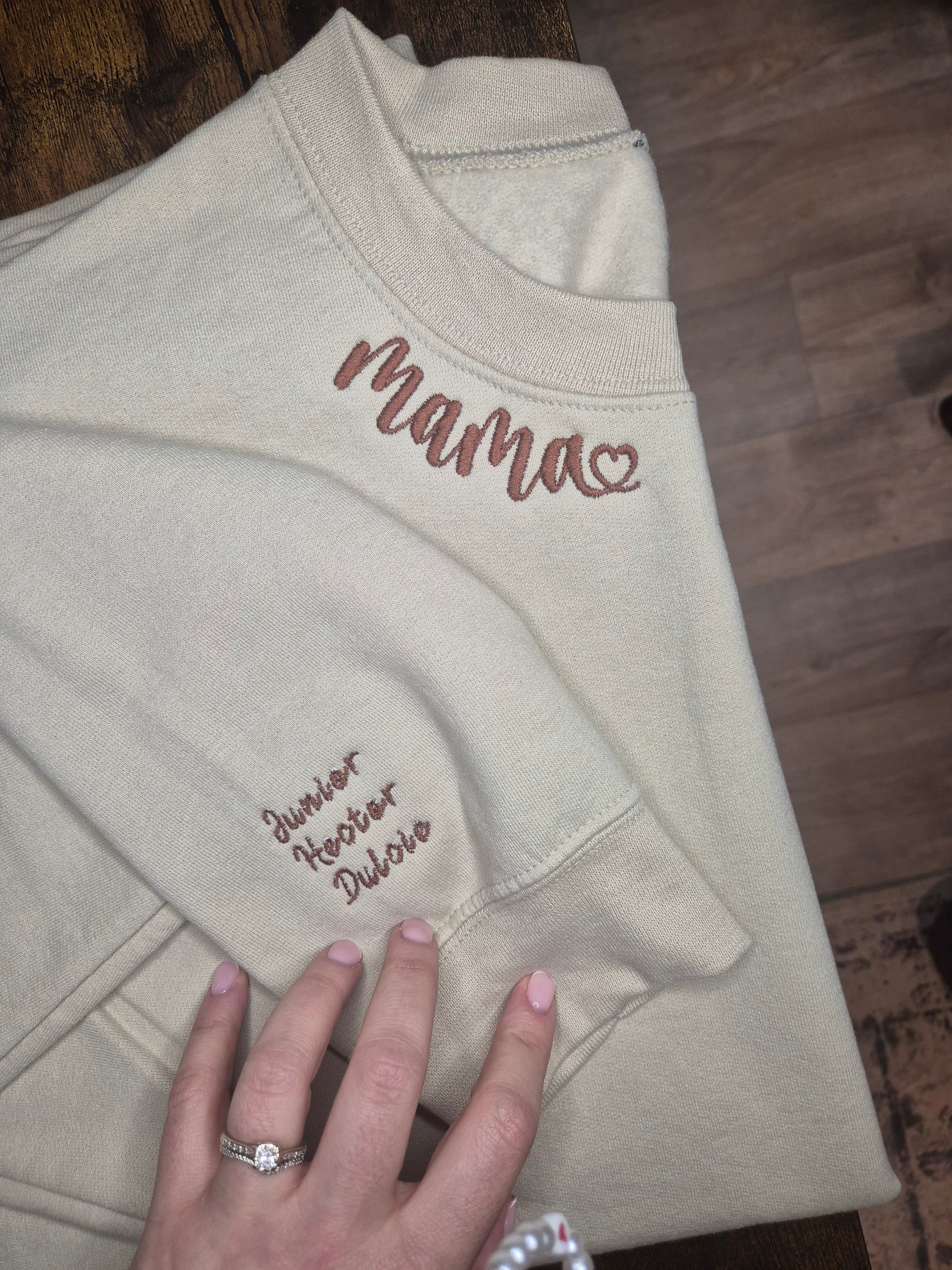 - "Mama" embroidered on the neckline